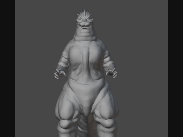 今度は巨大ではなく等身大ということで、程よく今風になったベビーゴジラを動かしてみようと思ってます。モリモリカタチ出しをスタート。写真を切り貼りして着地のイメージを探ってみる。下半身のスーツ感を抑える方向で可愛らしさが出るといいんだけど🧐