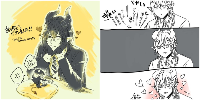 たきのさんからのリクエストで、「ちいさいレオナさんにきゅんきゅんしているマレウスさん」でした!(小さいの意味合いが違ってたらすみません) 描かせていただきありがとうございます! https://t.co/uDQ36PYYRQ
