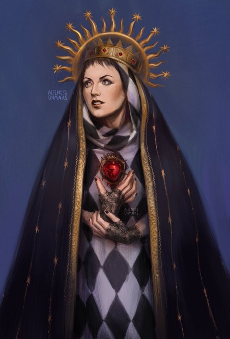 Dolores O'riordan sketch I did yesterday. I'm planning to make it a finished painting as if it was Lady of The Seven Dolours 🌧️
