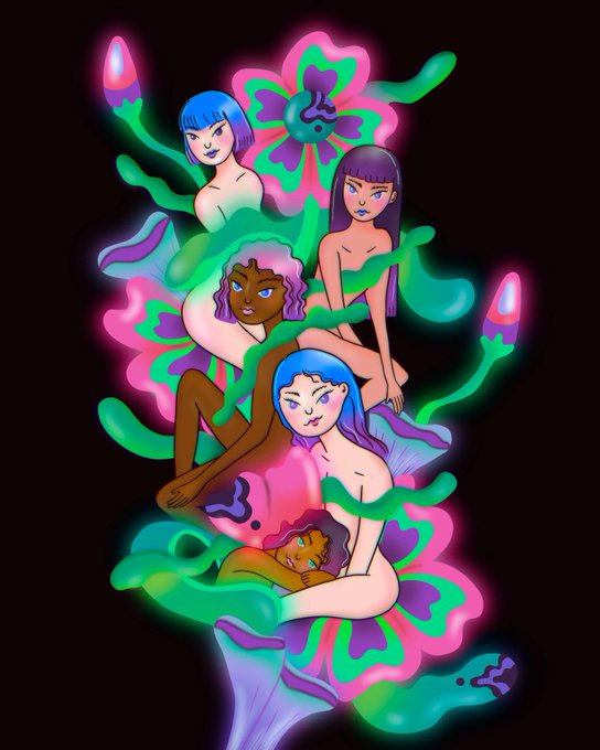 "Lust's Garden" - The art piece portrays a garden as a metaphor for the journey of growth and self-discovery. The lush foliage and vibrant flowers represent the abundance and potential that exists within all of us. - open edition live now on @niftygateway