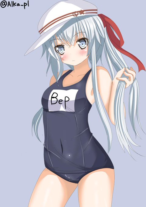 お題フリーだったのでヴェルちゃんに提督指定水着を着てもらいました!!(`・ω・´) #艦これ版深夜の真剣お絵描き60分一本勝負