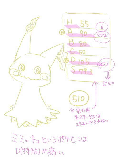 @83Ryu227 雑な説明すると、 ミミッキュは特防が高いポケモンなので、特防に252振るといいです👍🏻
