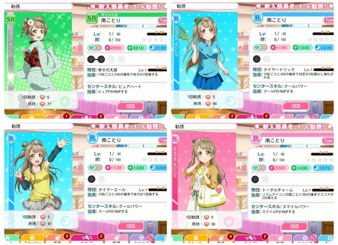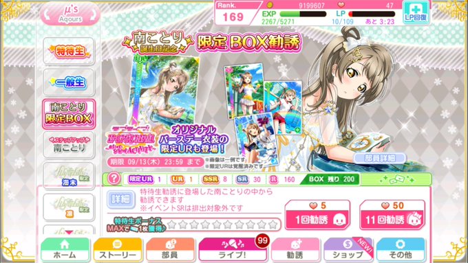 昨日12日はμ’s 南ことりᒼᑋªⁿのお誕生日ということでサブ垢で限定BOX勧誘、単発5回引いてみた!
