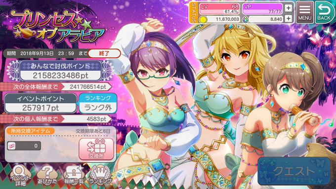 『プリンセスオブアラビア』イベ昨日終了
