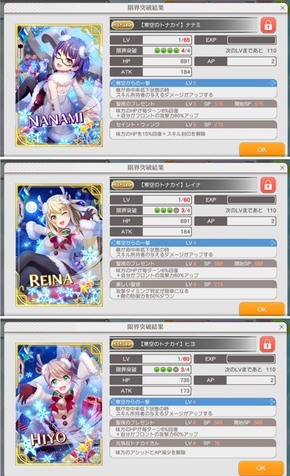 SSR【寒空のトナカイ】ナナミは限界突破4枚目まで。