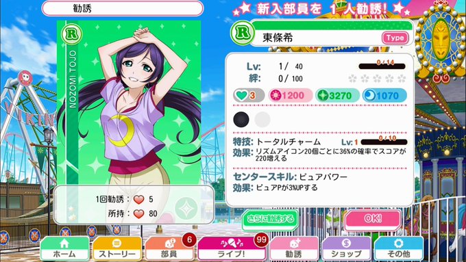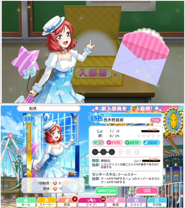 本垢とサブ垢で60000pt達成報酬でSR東條希(2枚目)GETで目標達成✨