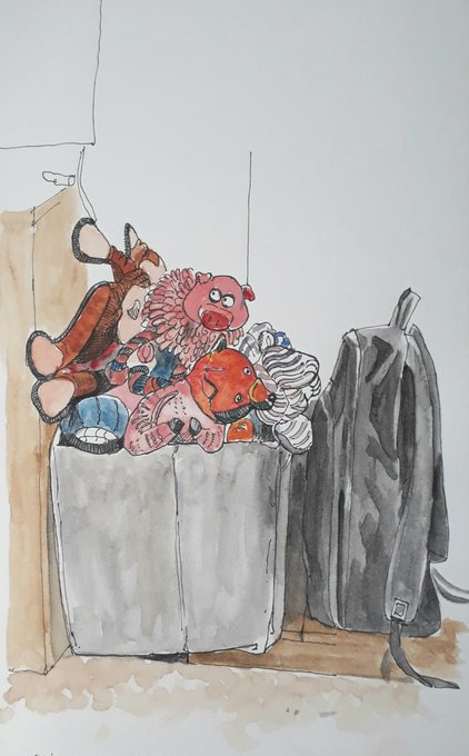 #DrawingAugust, day 17. Toy box. Pen and water colour, a quick sketch for the Drawing August challenge. #penart #drawing
