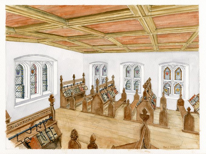 Simplified #watercolour of choir stalls, St Clements, Sandwich. Study for reconstruction #drawing