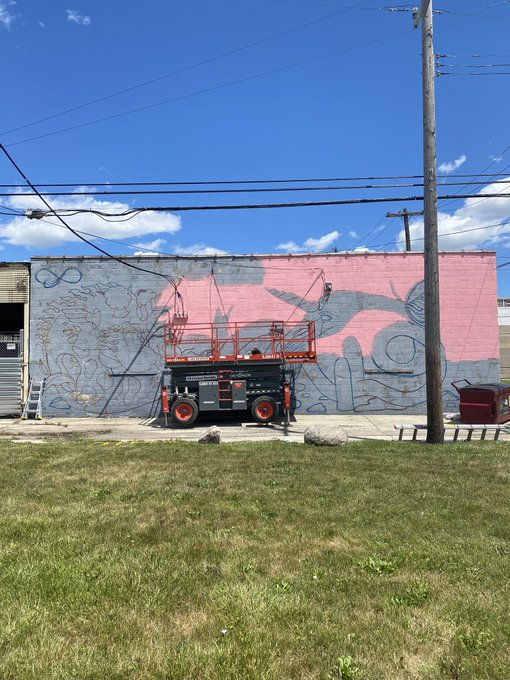 The wall I’m working on in Detroit with @lurkanddestroy_ 💖 Plus a little sneak at my rough sketch 🌈✨