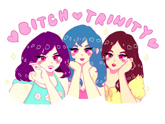 meet bitch trinity (@candyacne_ & @guenscomics & me!) vs us irl (holy shit this too SO LONG to finish??? I drew hands???? wtf) 💖