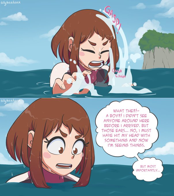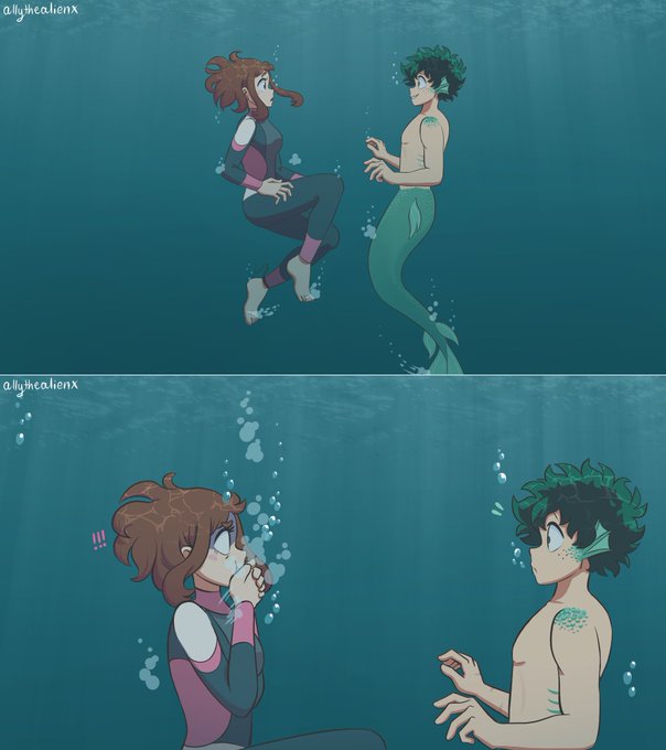 Part 4 of the Mermaid AU comic "The Surfer and the Merman" (1/2) #izuocha #bnha