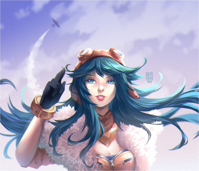 all these new skins are coming out and here I am making fanart of Aviator Irelia 😭✌️
