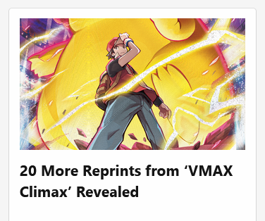 Keep impatiently checking Pokebeach for Vmax Climax card reveals even though I know it'll still be like a month before anything substantial gets out and this headline keeps scaring me at first glance until I notice the word "reprint"