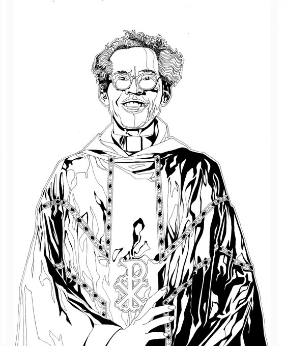 Process: Blueline pencils, inks, digital painting. Subject: The Rev. Pauli Murray. Civil rights activist. Women's rights activist. LGBTQ activist. Oh, and the 1st Black woman Episcopal priest. #paulimurray #episcopalchurch #religiousart #commission #portrait #illustration