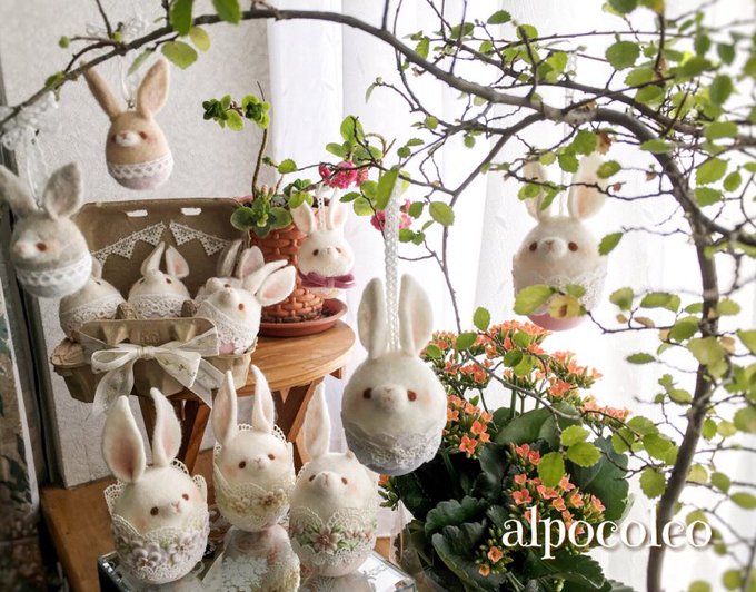 今年は3月からネット販売を始めた たまごうさ達とやっと完成した看板娘かな!あたたかいお言葉を頂きまして感謝でいっぱいです。25日にプレゼント企画しますのでよろしくお願いします(*´▽`*)