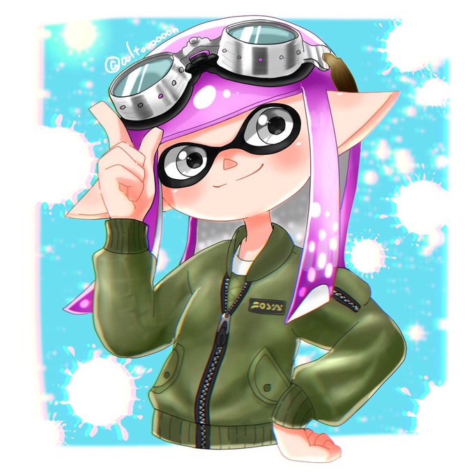 よその子3人目!ねゆるちゃん(@hprs_04_ )のマイイカちゃん✨ゴーグルもジャケットも塗りがなかなか難しかった😭いつもより可愛いさを意識した仕上がりです💕描かせてくれてありがとう😍