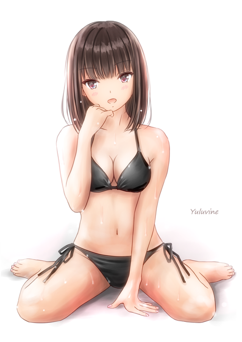 ポニーテールの女の子、ビキニ水着、競泳水着、スクール水着、できましたヾ(*´ー`*)ノ