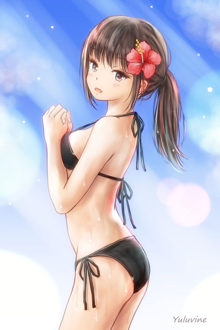 ポニーテールの女の子 ビキニ水着 描けましたヾ(*´ー`*)ノ