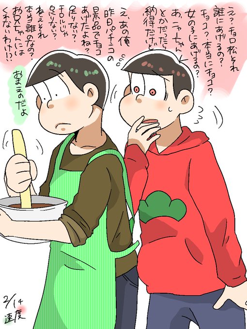 いつもおそチョロだからね たまには不安がってる長男描こうかなって思ったんだよ てことで速度バレンタインですん