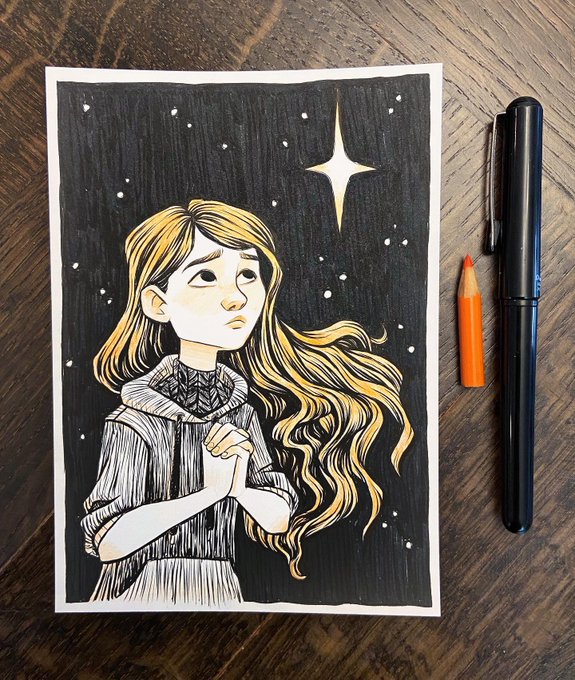 One of these days I should probably get a white pen to draw all the small and thin white parts in my drawings. But that day isn’t today