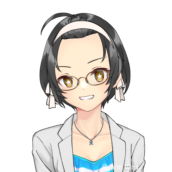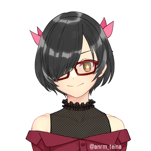 音楽を使ったメンタル治療の勉強をしてる医学部の子で、普段は白衣+前が見やすいデコだしだけど、ライブ中は派手な服+コアな人気のあるメカクレになります。