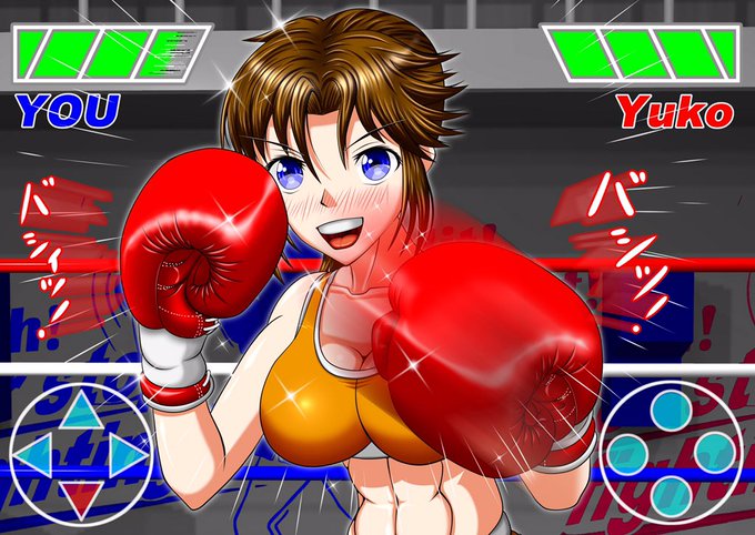 サントスさん家の祐子さんとボクシングする絵をゲーム風にしてみました(^o^)