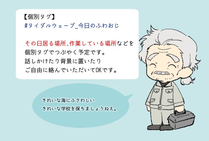 タイダルウェーブ【@tidalwave_tl 】様に参加失礼します。よく見かけるかもしれない用務員のおじちゃんです。学校が沈んでも清掃頑張ります。よろしくお願いします。