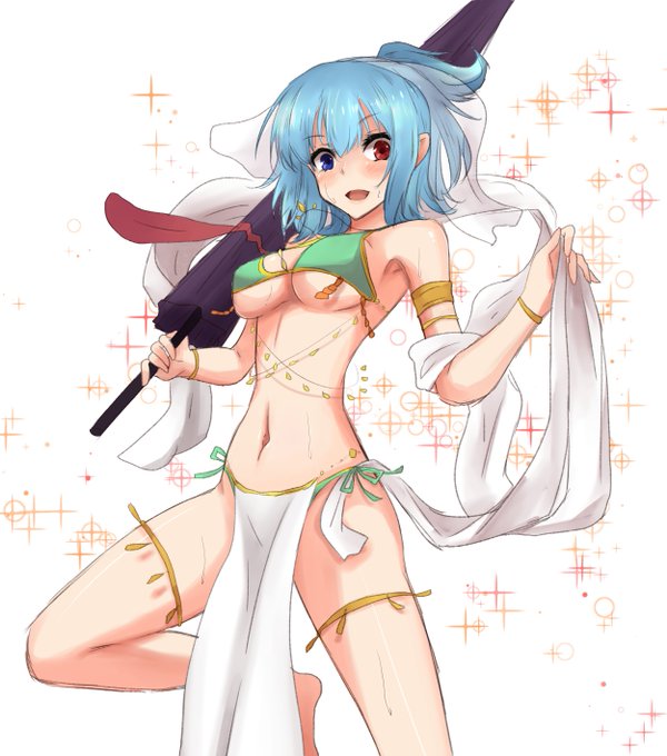 #深夜の真剣お絵描き60分一本勝負 今日は踊り子風小傘ちゃんです^^ 前からこうゆうの描きたいと思っていたので小傘ちゃんに着てもらいました