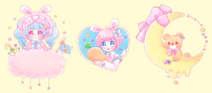 こんな感じの、3枚セットのシールがデザフェスで出る予定です🐰💖🐻