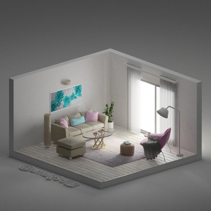 ثاني تصميم بأسلوب #isometric غرفة #3D الإضاءة النهارية أحلى ولا الليلية؟ @Designers_Sup @dam_designers
