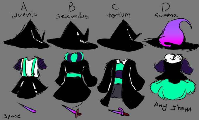 made magic school uniforms and magic, also level D scarfs can be swapped out with different scarfs.