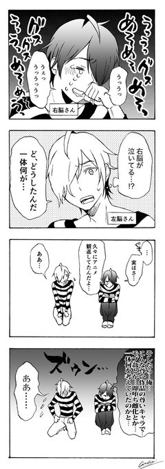 こっちの垢で上げ直しです。残念な二人の男子の話です。ちょいちょい描いていきたい。 #右脳さんと左脳さん