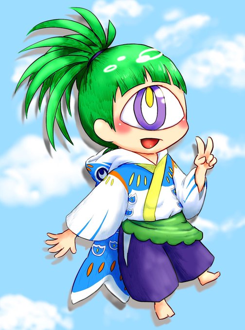 桜単眼ちゃん描きました デジタル塗りが盛りに盛れるからどんどんケバくなってく…怖い…