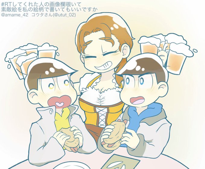 素敵絵を自分の絵柄で描くタグで コウタさん【@utut_02】のお借りしました! ドイツといったらビールですね✨背景ログアウトでごめんなさい😭タグ反応ありがとうございました!