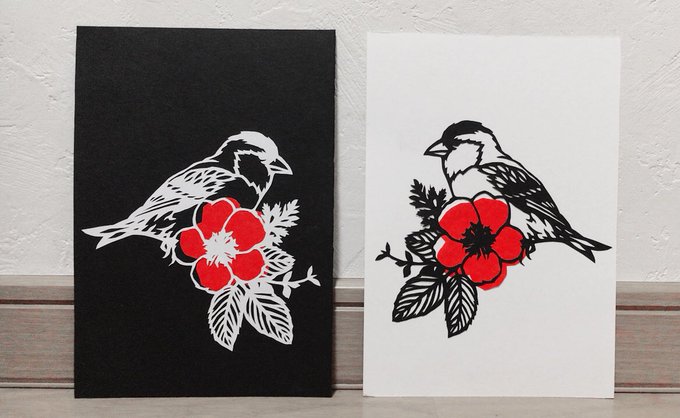 美術の授業で作った作品たちをもって帰った 1枚目は水墨画で2、3枚目は切り絵🎨