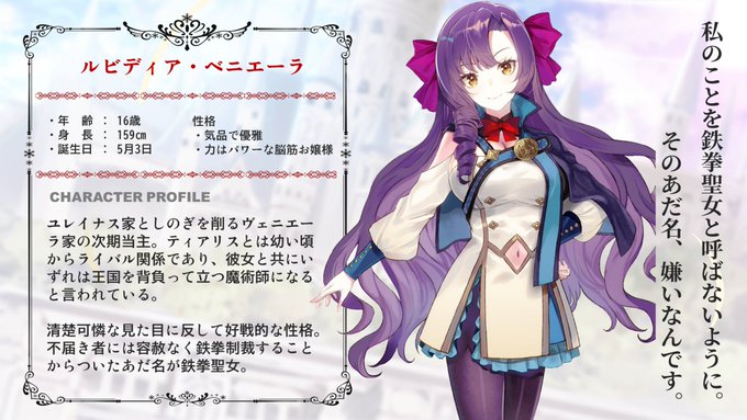 魔術学園所属の美人教師。妖艶な見た目に反して子供っぽいギャップが男子生徒に大人気。希少な治癒魔術の使い手でもある。