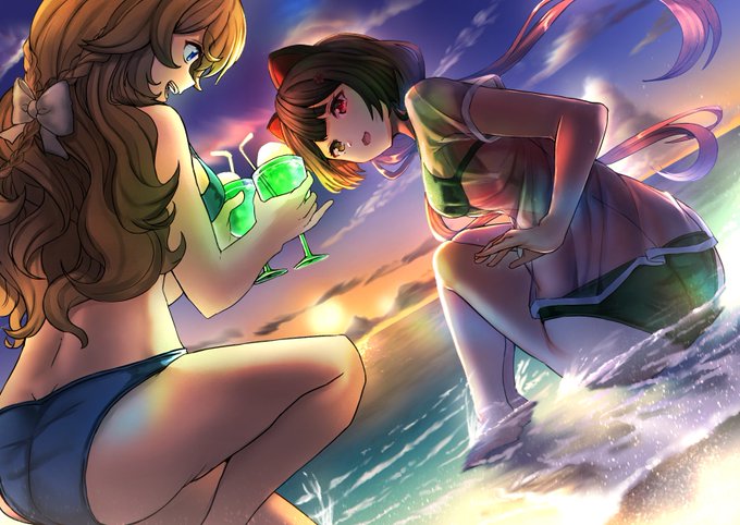 夕暮れ水着ギバとこ🏰🕛🍹 #えらすとや #いぬいらすと