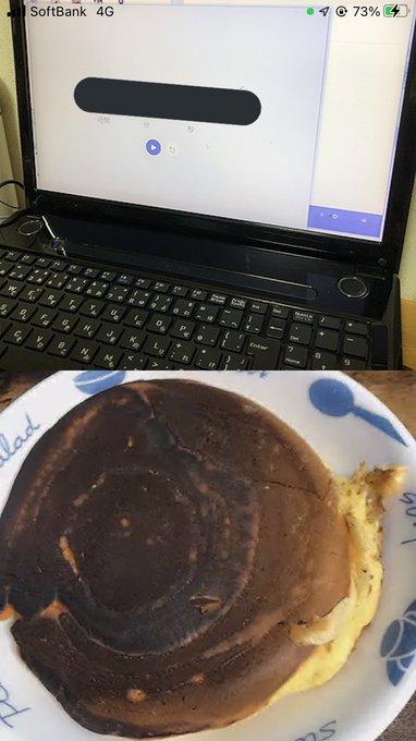 🍎を食べたあと、上はだし巻き玉子を下はホットケーキをお互い素手で食べましたΨ( 'ч' ☆)