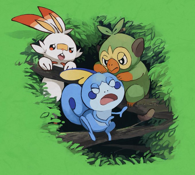 勢いのままにガラル地方の御三家、サルノリとヒバニーとメッソン描いた。サルノリはめっちゃ一生懸命毛づくろいしてくれそう