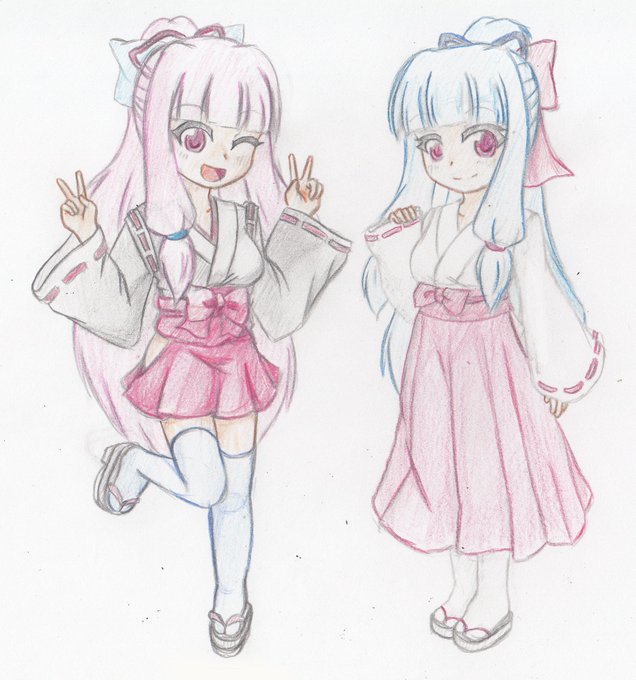 色鉛筆久々に使った 巫女琴葉姉妹塗ったよ!