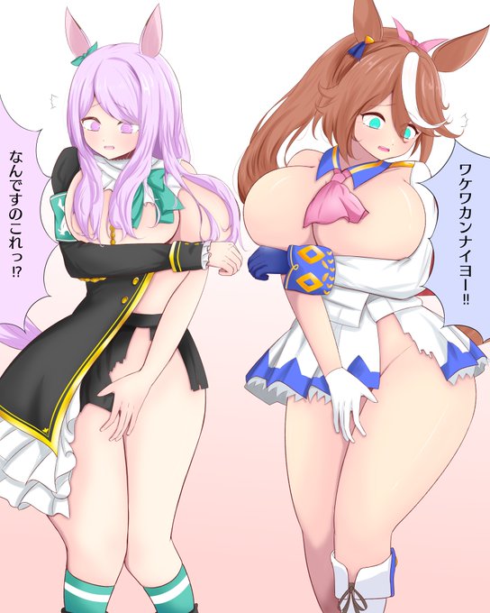 スケブ依頼ありがとうございました!! 「ウマネストプレイ中に着衣不可デバフトラップを踏んだテイオーとマックイーン」 前に描いたキングとウンスのリメイクみたいな感じです