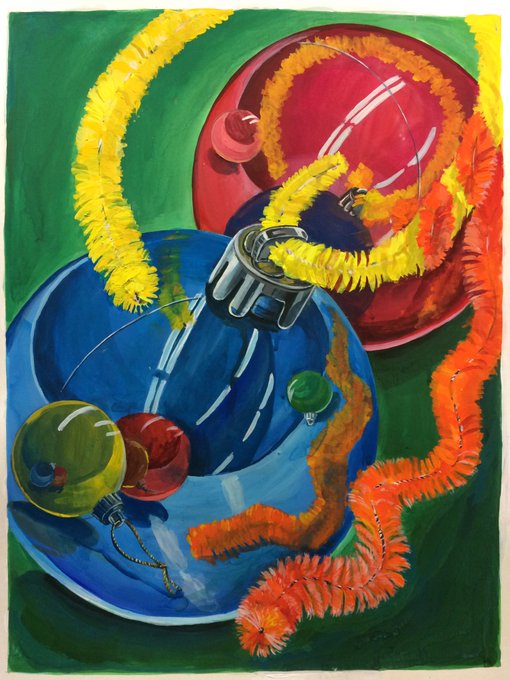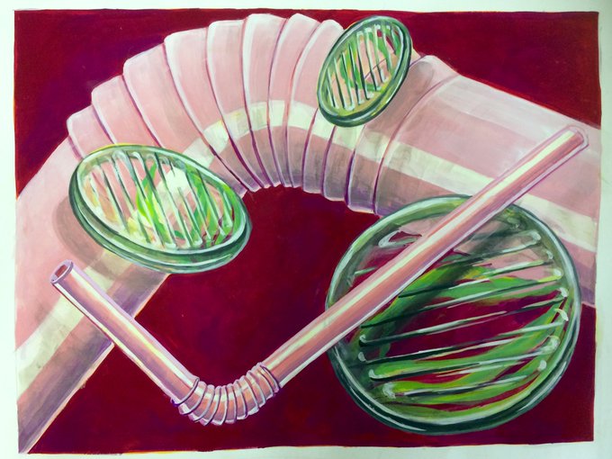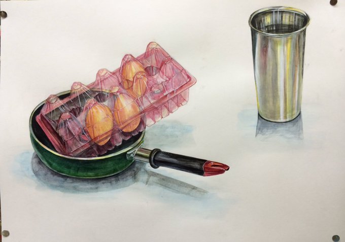 今日のモチーフ構成。ストローとおはじき。今回は先生の助言一切なしで挑戦!