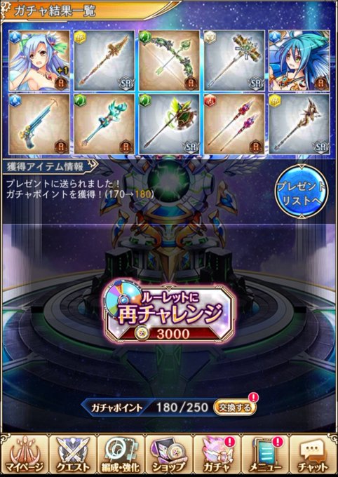 無料ガチャ8日目は10連。 実家から出られない…( ˘ω˘)