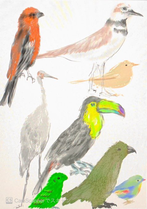 1コマ絵日記と落書き以外だと鳥しかないですね。(4枚目は洗濯に失敗したオリジナルTシャツ) #今月描いた絵を晒す