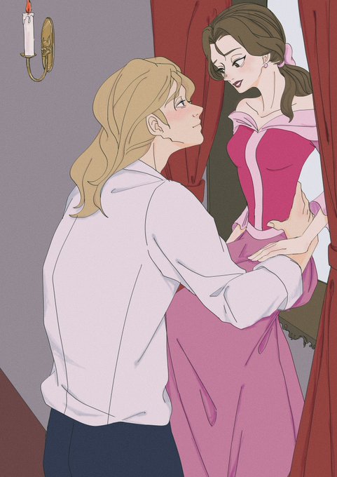 胸元にそっと手を添えるベル。ベルの細腰を大きな手で支え優しい眼差しのアダム…眼福すぎるんよ…