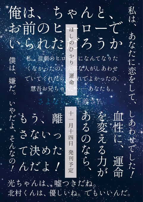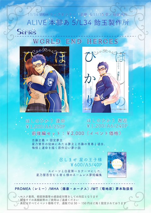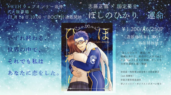 8月に頒布したwhr正義さん夢本「ほしのひかり 邂逅」の続編です。1枚目は制作中ですが表紙イメージです。