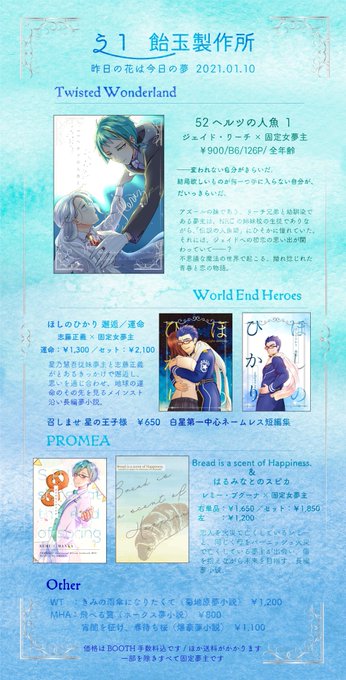 twst/whr/prma/WT/MHA よろず夢サークルです!🐬夢本新刊は #ユアドリ2 での頒布です。通販は以下から!