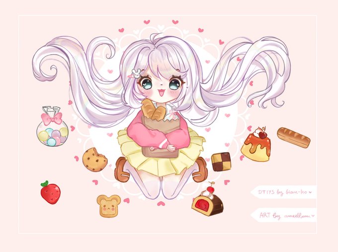 #DTIYS_entry #whitehair #bunnygir #bread #kawaii #cuteart #pinkaesthetic #pink #sweet