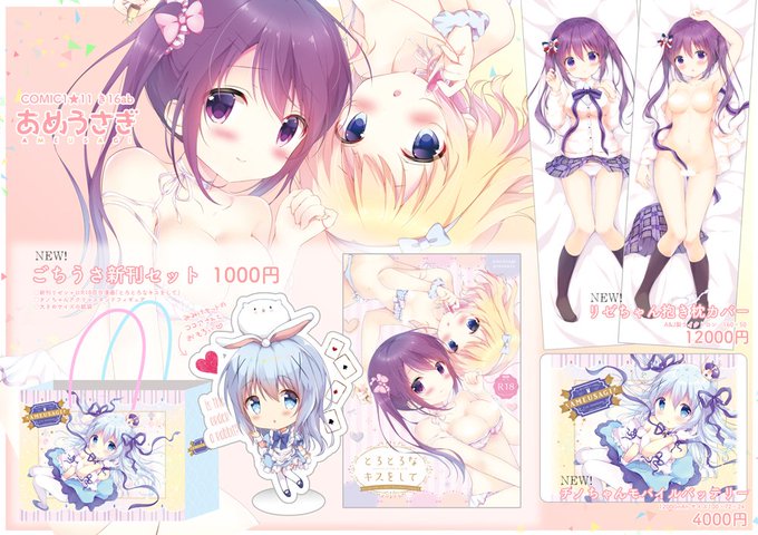 ごちうさ新刊セット、リゼちゃん抱き枕カバー、チノちゃんモバイルバッテリーが新作です✨よろしくお願いします!