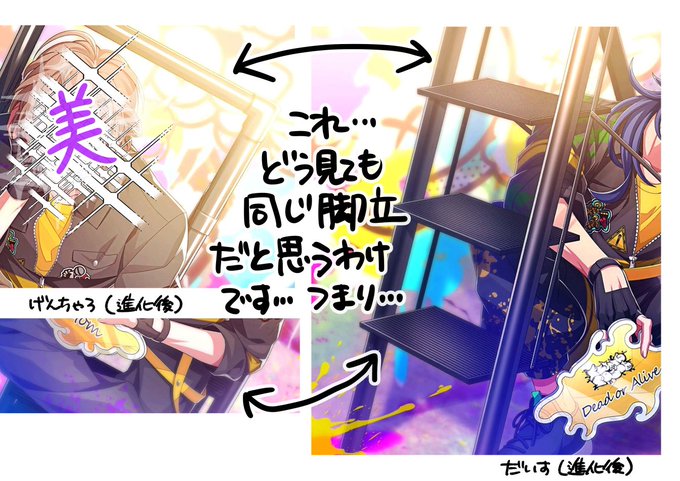 🎲誕漫画描いてる途中に気づいて漫画描くどころじゃなくなった女のツイートです… 進化後見られる人は気づいたよね…?拡大しまくったの私だけじゃないよね…? (えあるびBDカード進化後注意)